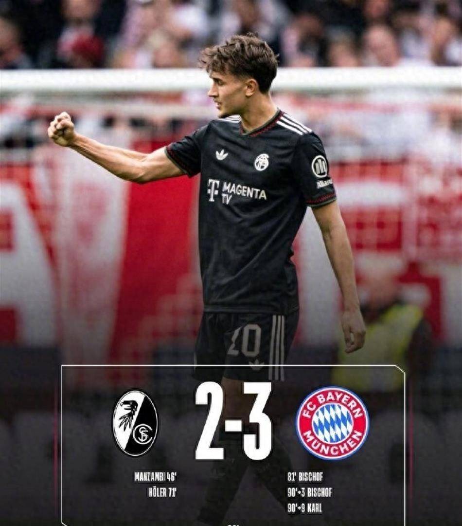 比赛进行到第80分钟,拜仁仍然0-2落后,欧罗巴公园球场的弗赖堡球迷已经开始庆祝一场即将到来的胜利。 然而,足球的魅力就在于它的不可预测性。 第81分钟,拜仁获得前场定位球机会,球被解围到禁区弧顶,20岁的小将比朔夫迎球一脚低射,皮球贴着草皮窜入球门右下角。 1-2,拜仁扳回一城,希望重新被点燃。 这个进球是比朔夫为拜仁一线队出战的第34场比赛中的第一个进球。